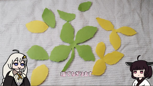 次は厚紙に葉っぱを描いて指でちぎったモノを水引の様に風船に貼り付けます。