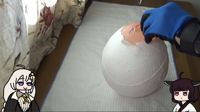 気を取り直して、次の作業に移ります。風船を割って風船のゴムを取り出します。