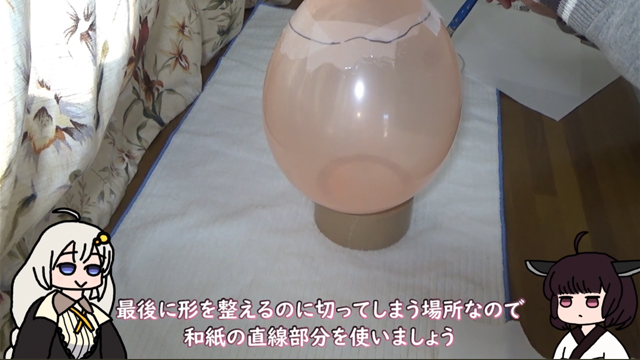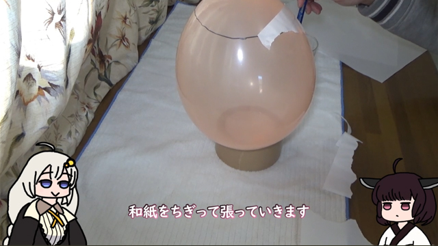 用意するのは和紙と風船。作り方はいたってシンプル、風船の上に和紙を張っていくだけです。