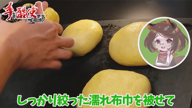 ガス抜きした生地の形を整えて、絞った濡れ布巾を被せて20分ほど発酵させます。