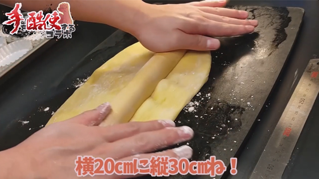 先ほどの生地を横20cm、縦30cmになるように伸ばします。
