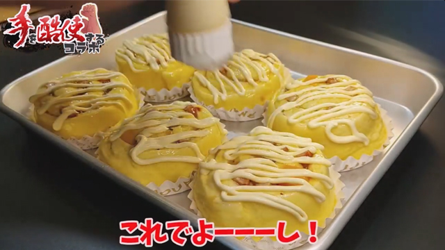 総菜パンは上にマヨネーズをかけてオーブンで焼きます。