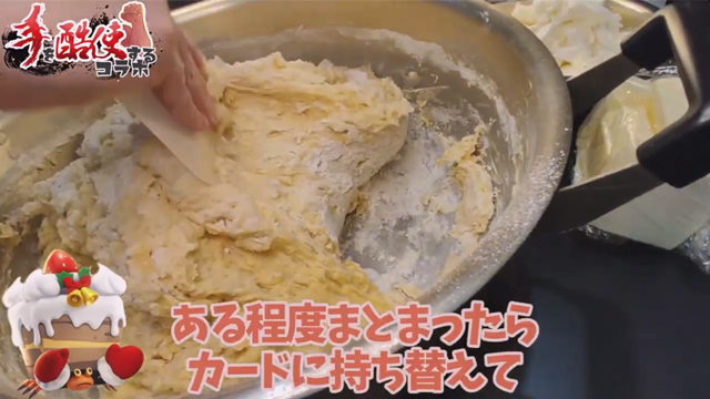 実は、この方法はあまり使いたくなかったそうで、粉を加えた分、パンが固い仕上がりになってしまうとのこと。しかし、まとまらないよりはマシなので、今回は粉を加えて生地をこねる形になりました。
