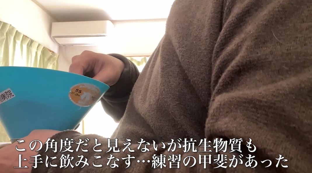 エリザベスカラーで見えませんが、錠剤やら液体の薬やらを上手に飲みこなします。泊まりの手術でいっそう甘えん坊になったのか、お薬をもらうのすら嬉しそうなのだとか。