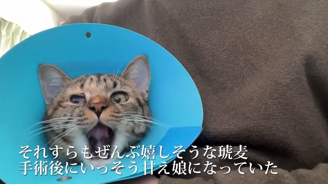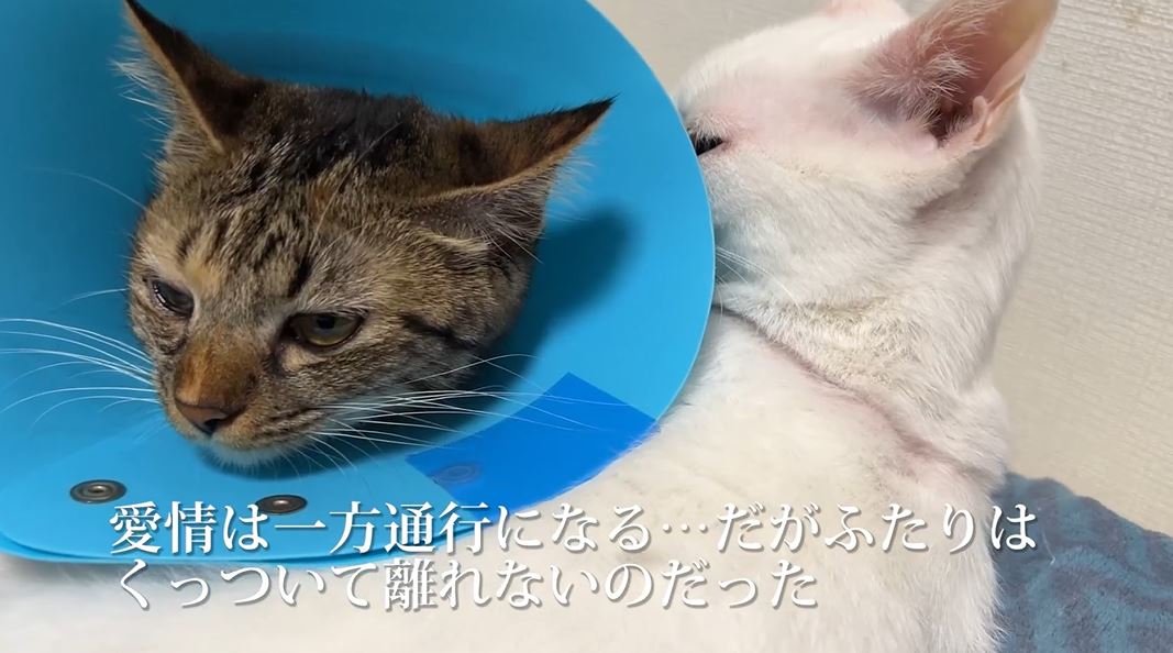 今回紹介したいのは、ニコニコ動画に投稿された『手術明けの娘猫、エリザベス越しの兄の愛情』というねこかますさんの動画です。