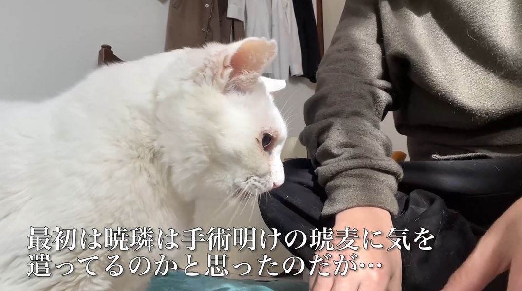 意外にも塩対応だったのはおじいちゃん猫の曉璘(しゃおりん)ちゃん。