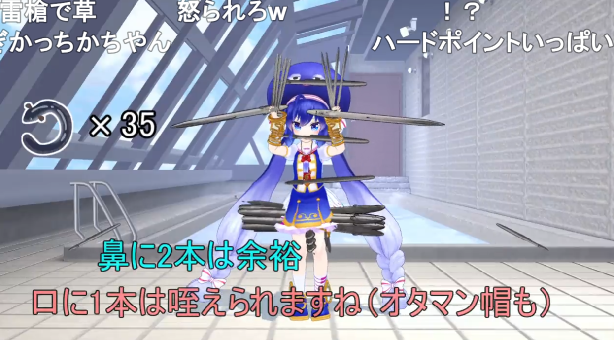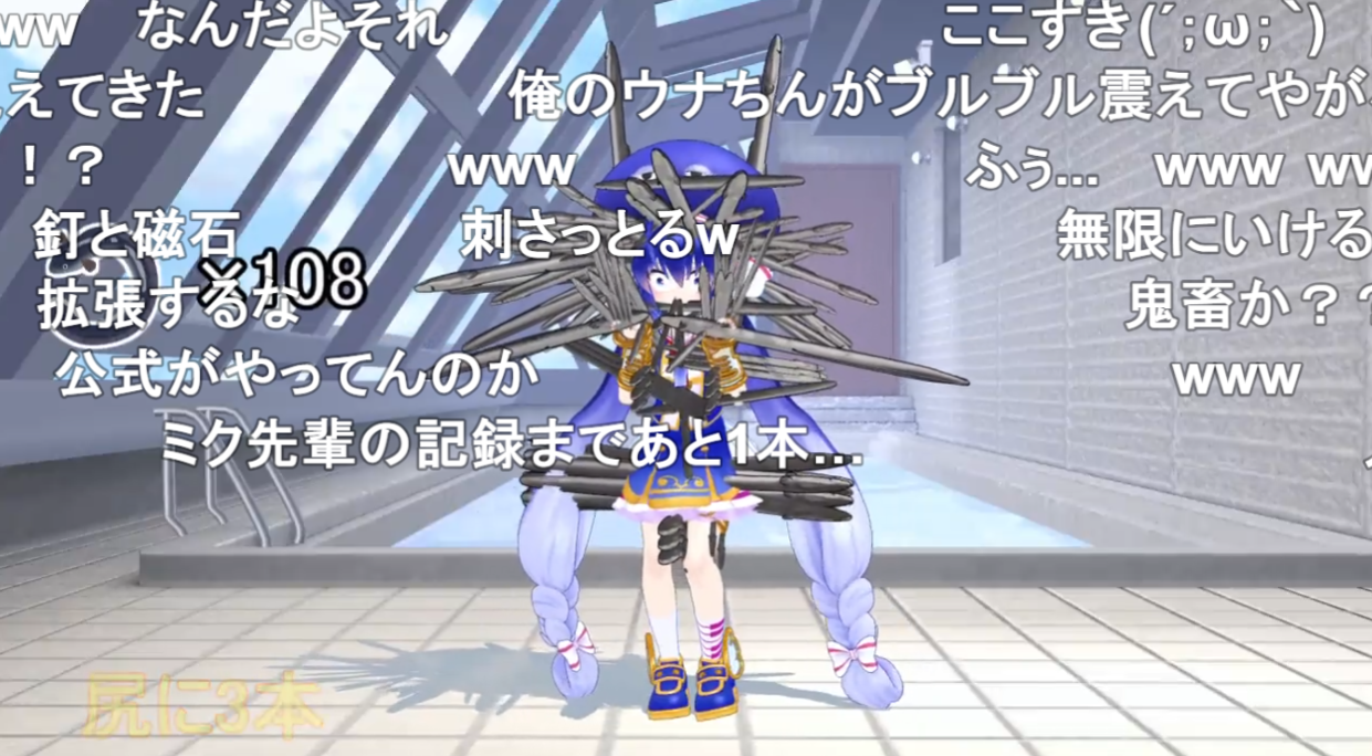 もはや、どこまで行くのか予測不能になってきました。体のありとあらゆる箇所に、次々とうなぎを挟んだり詰め込んだりしていきます。まさかのお尻にも挑戦!……ですが、さすがに3本は無理だったようで、苦悶の表情を浮かべます。「音街ウナに恨みでもあるんですかね…?」というコメントも。