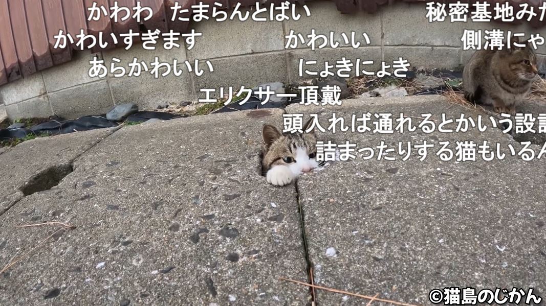 猫たちが次々と側溝に吸い込まれていく? 「猫は液体」を実感する楽し気な姿に「かわいい」の反響
