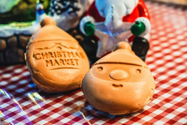 目玉は毎年福岡で行列ができる名物クリスマスアドベント公式キャラクター「さんちゃん」の人形焼き、粗挽きの豚肉を絶妙に配合し、パリッとはじける皮と芳ばしい旨みが魅力の「ぐるぐるソーセージ」。さらに、寒い夜には東京限定マグで味わう濃厚ホットチョコレートを。