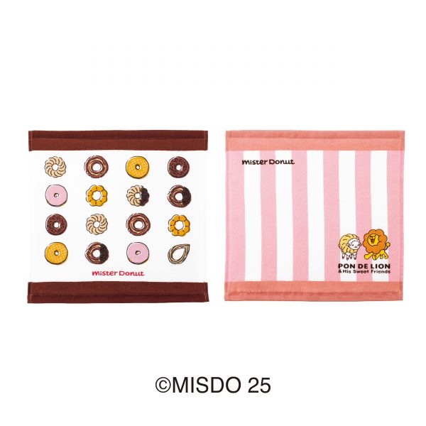 ポン・デ・ライオンとフレンチウーラーがかわいいストライプ柄と、人気のドーナツがデザインされたドーナツ柄のハンドタオルの2枚セット