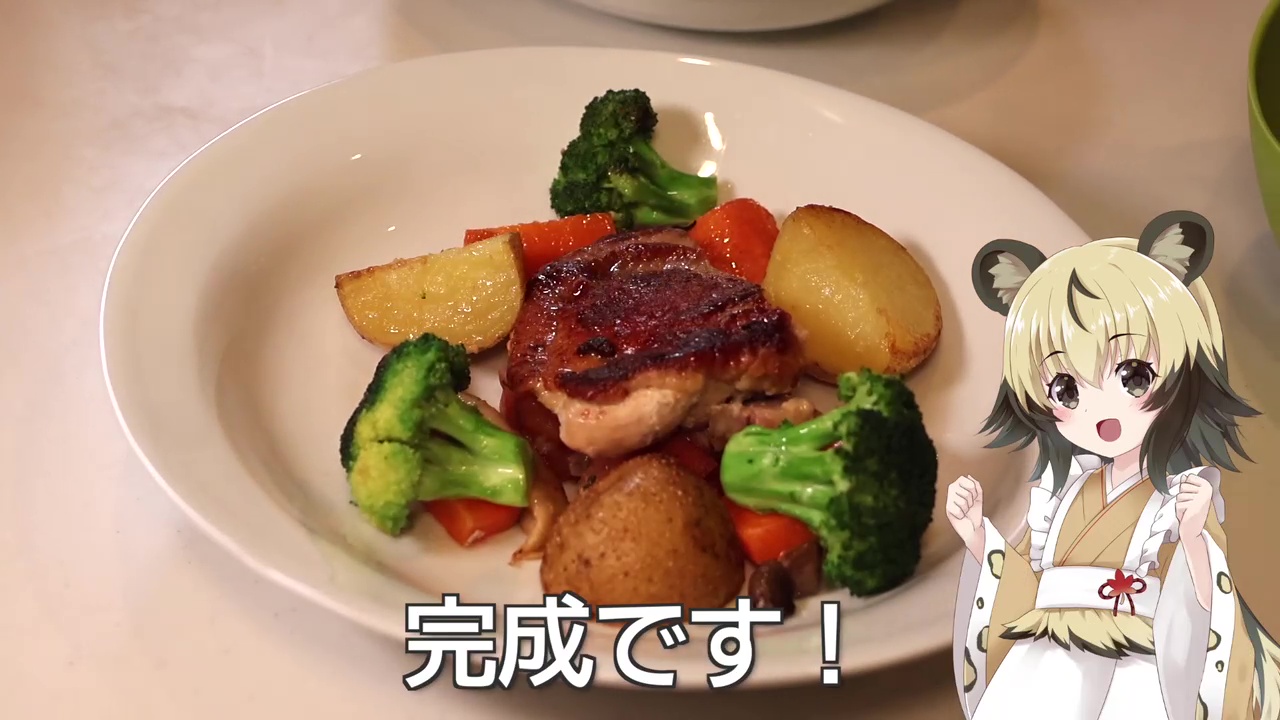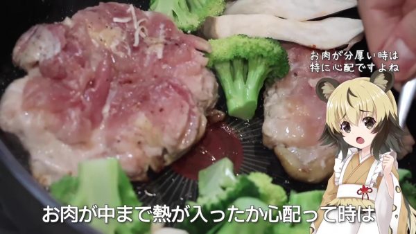 10分後、野菜に火が通ったら取り出し、ブロッコリーなど別の野菜を加えます。お肉は返しません。火が入るか心配であれば、油をすくって上からかける「アロゼ」をしたり、10秒〜20秒ほど裏返して身側を焼きます。全ての野菜が準備できたら、火を止めて余熱で身側に火を入れます。
