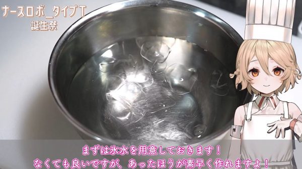 作り始める前にまずは氷水を用意。無くてもOKですが、あったほうが素早く作れるとのこと。