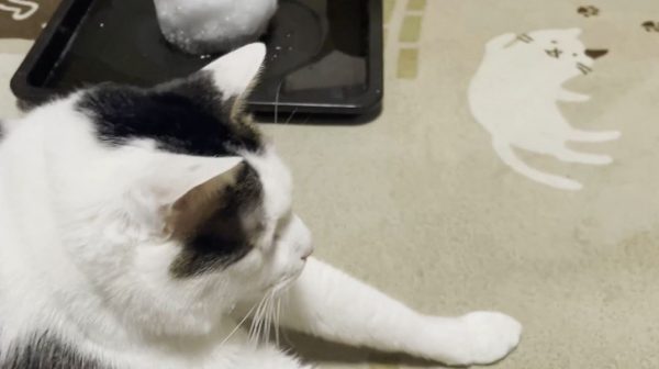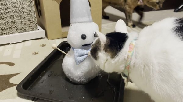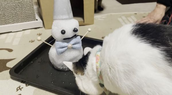猫ちゃんに「雪だるま」を見せてみた! 好奇心旺盛ながらも警戒を怠らない、猫らしい反応を示す