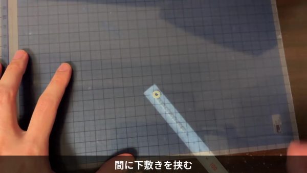 ワッシャーと磁石の間に下敷きを挟みます。そしてスケールを左右に動かしてみると、ワッシャーは磁石に沿って上下に動きます。これは下敷きを動かしても同じことが起きます。