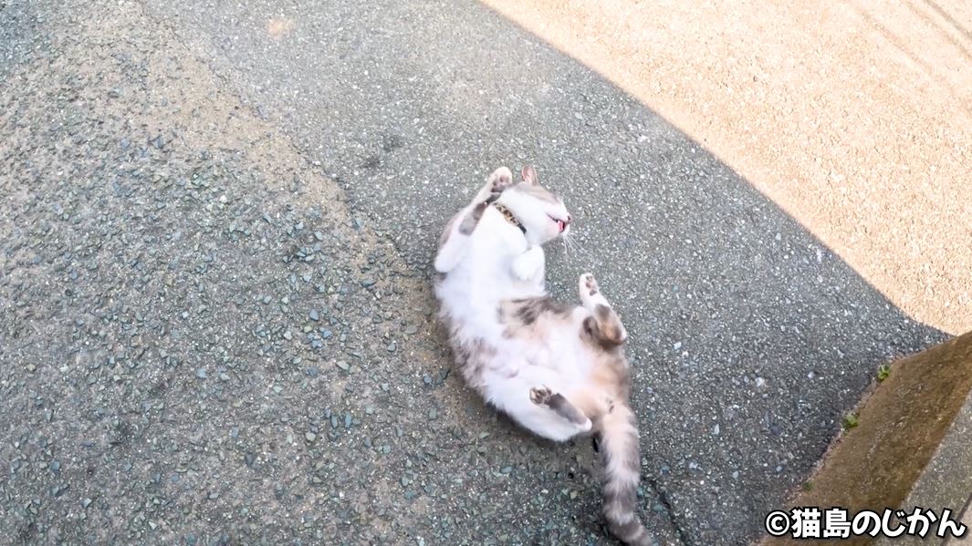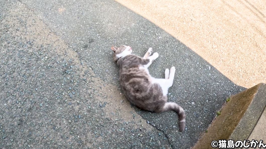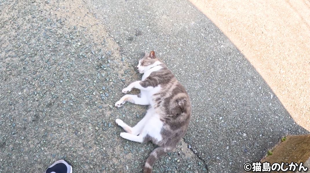その後は「ニャ~ン」と鳴いてから猫島のじかんさんの足へスリスリ。マイペースさと人懐っこさが絶妙な猫ちゃんです。
