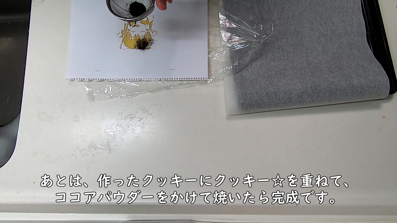 クッキーの生地を作ったら、切り絵をのせて、ココアパウダーを振りかけていきます。これをオーブンで焼けば完成。イラストがきれいに入ったクッキーができあがります。投稿者も「正直言ってうまく柄が出てくれるか心配でしたが、なんとかなりました」と語るなど、満足の出来栄えになりました。
