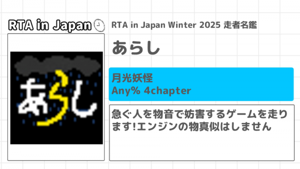 『RTA in Japan Winter 2025』走者名鑑! 100名以上の参加者のプレイするゲームとレギュレーションを一覧でご紹介