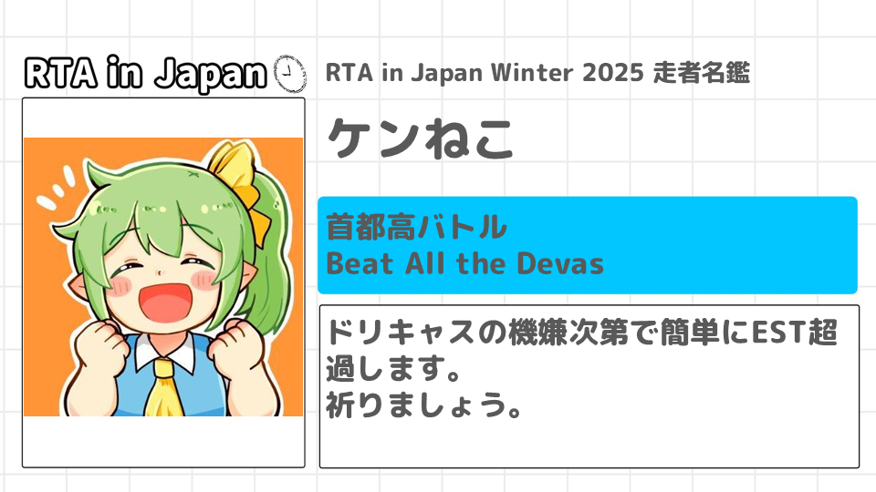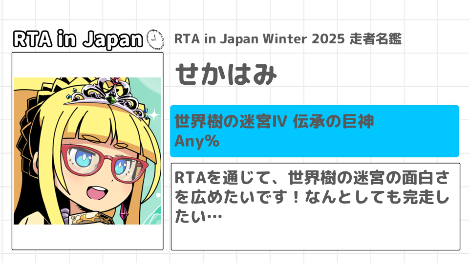 『RTA in Japan Winter 2025』走者名鑑! 100名以上の参加者のプレイするゲームとレギュレーションを一覧でご紹介