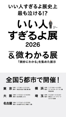 累計90万人動員の企画展の新作は、史上最も「泣ける?」作品を展示! 『いい人すぎるよ展 2026 + 微わかる展』が1/7から東京など全国5都市で順次開催