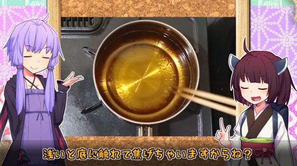 揚げるときは深さのある鍋がいいと鶏ささみさん。温度は180度です。