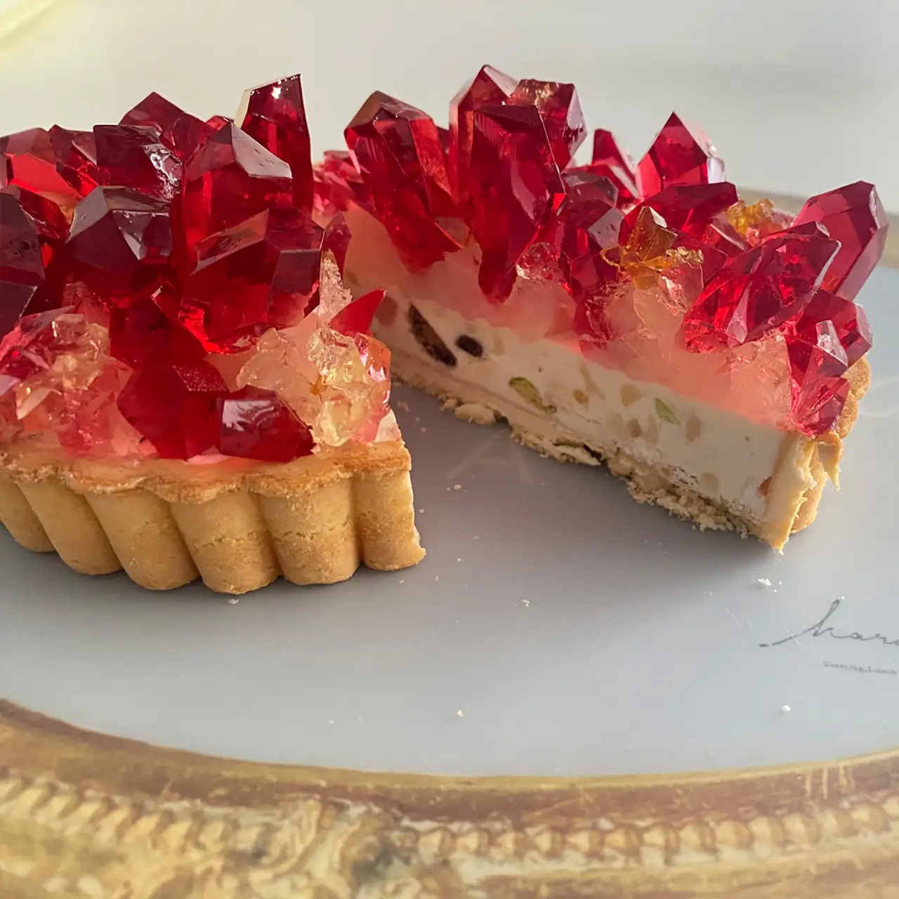 「ArtなFoodであそぶ」をテーマにプロダクトを展開するメルティングポットハラペコラボ株式会社(所在地:福岡県福岡市、以下 ハラペコラボ)から、1月の誕生石ガーネットを切りたての琥珀糖の輝きで表現した【誕生石のタルト〜1月ガーネット〜】が数量限定で登場。