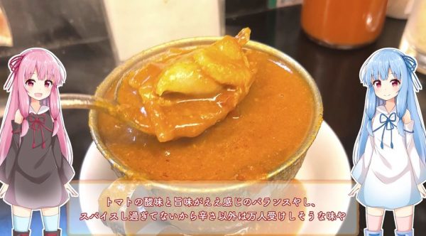 食べたシャルさんは「うん辛美味い」。爽やかなトマトベースのスパイスカレーという趣きで、酸味と旨味のバランスがいいそう。スパイスが強すぎなくて万人受けしそうな味わいだとか。ただしそれなりに辛いので、辛い物が苦手なシャルさんはヒィヒィ言いながら食べたそうです。