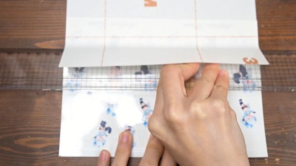 次は台紙にフィルムを貼り付けていきます。気泡ができにくいものを選んだとのこと。
