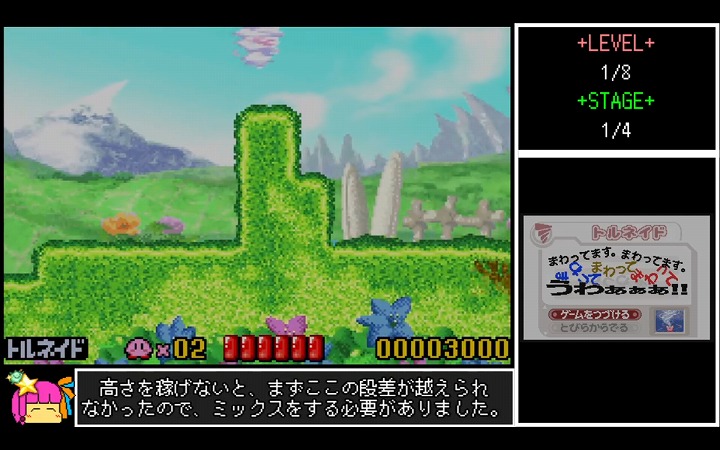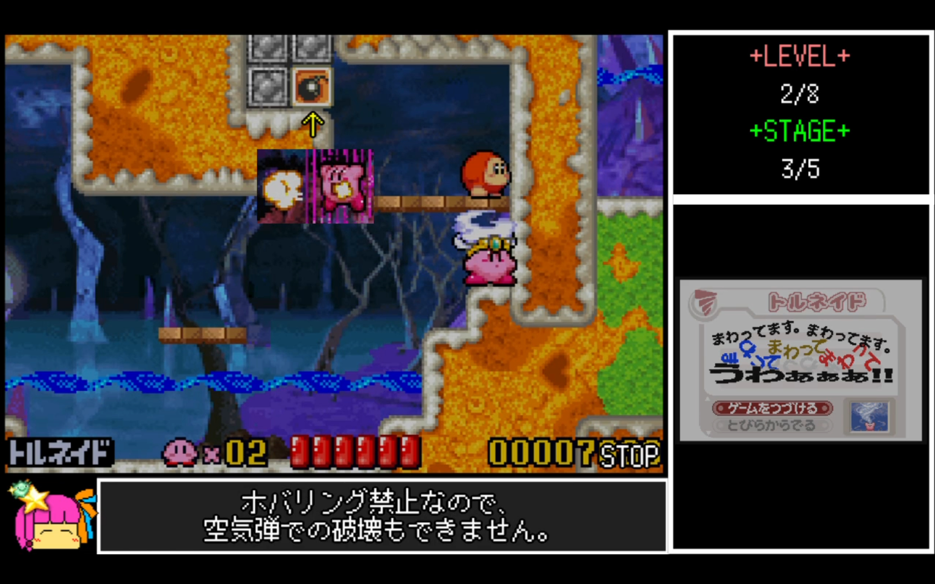 ミックスはコピー能力のルーレットから1つの能力が選ばれるが、むかっちさんは目押しでトルネイドを回収。
