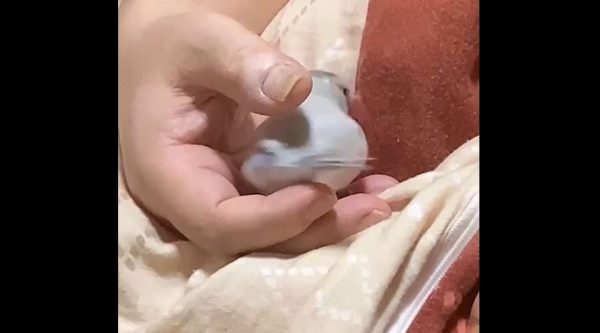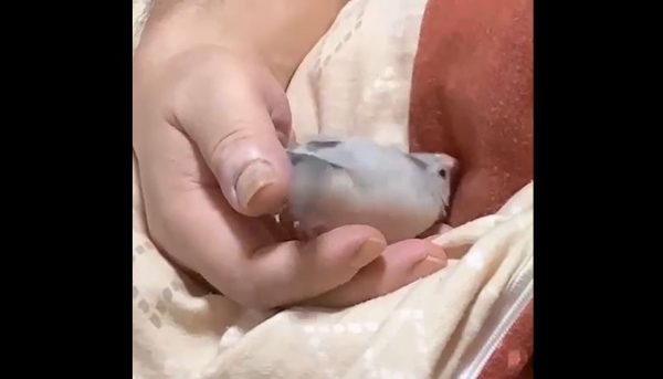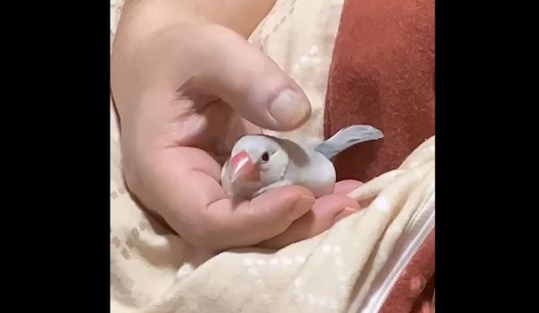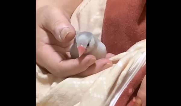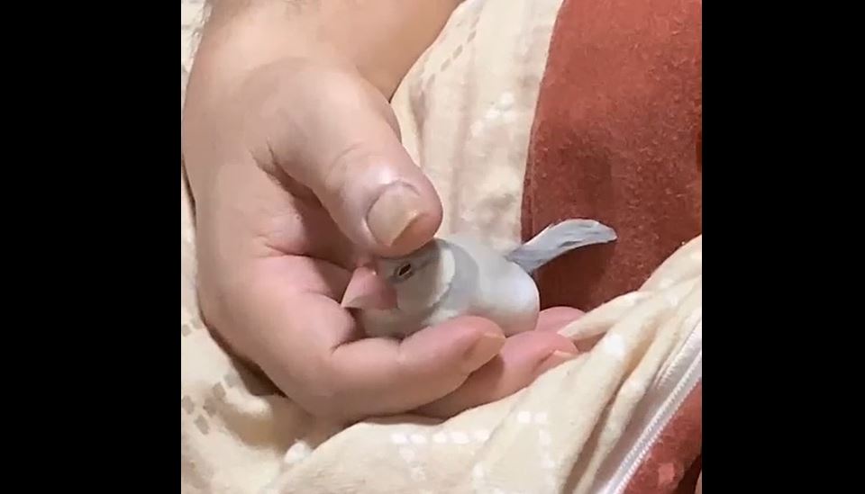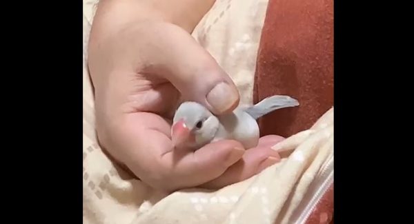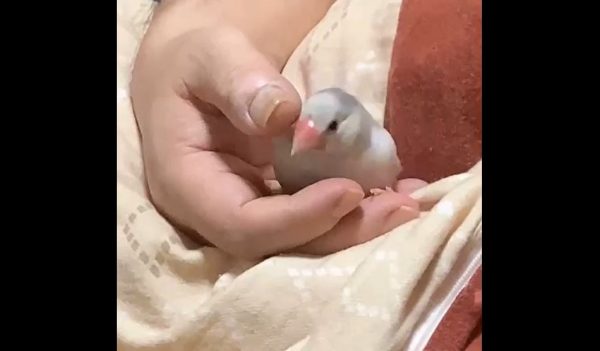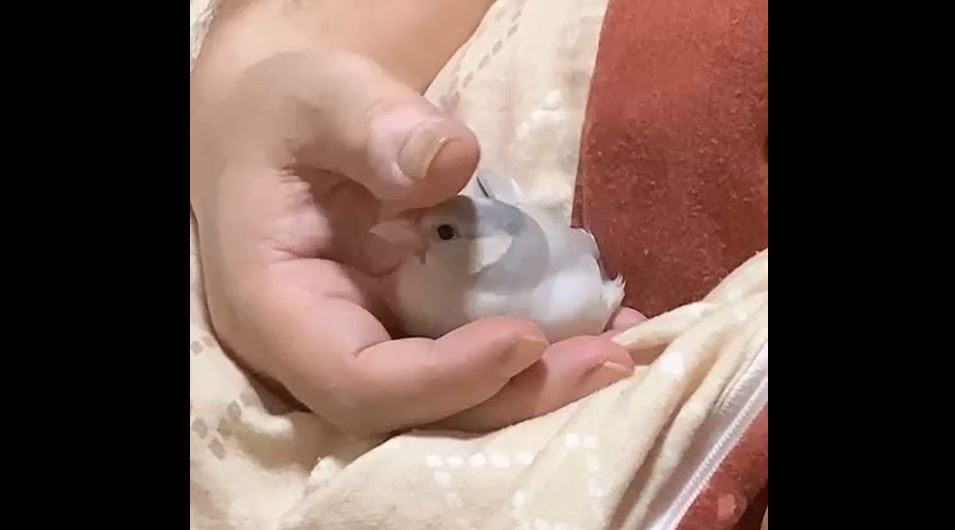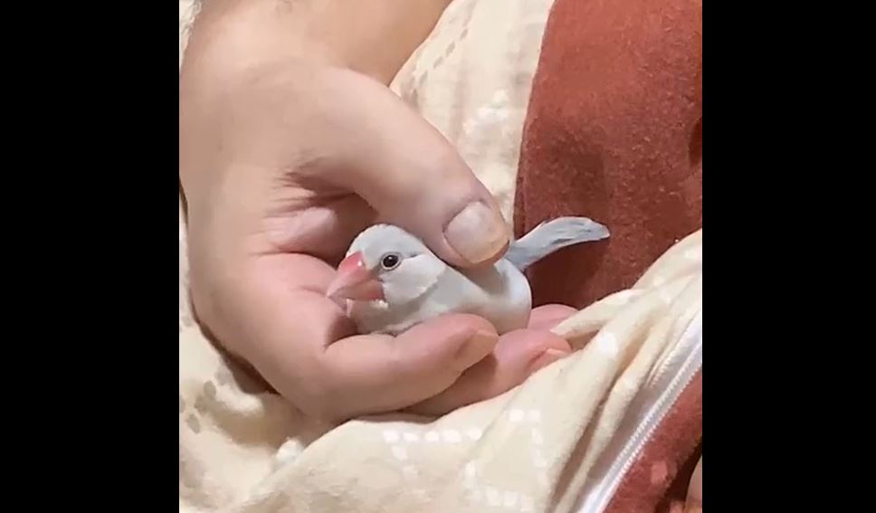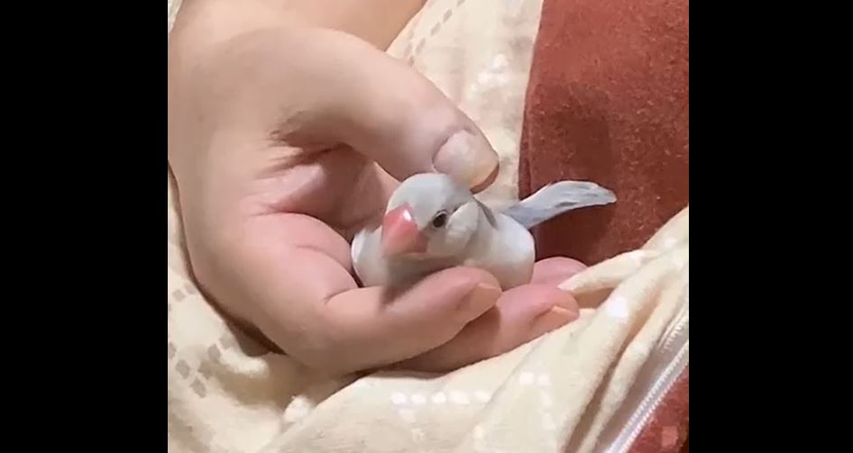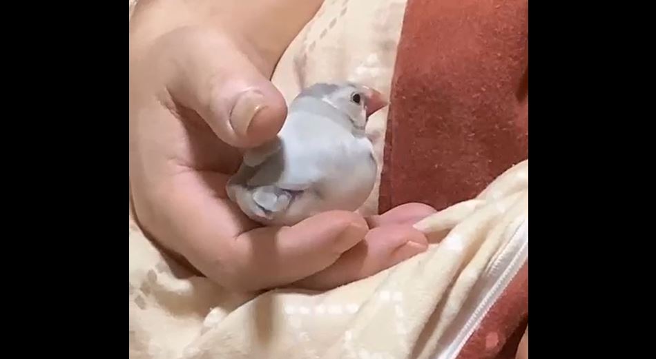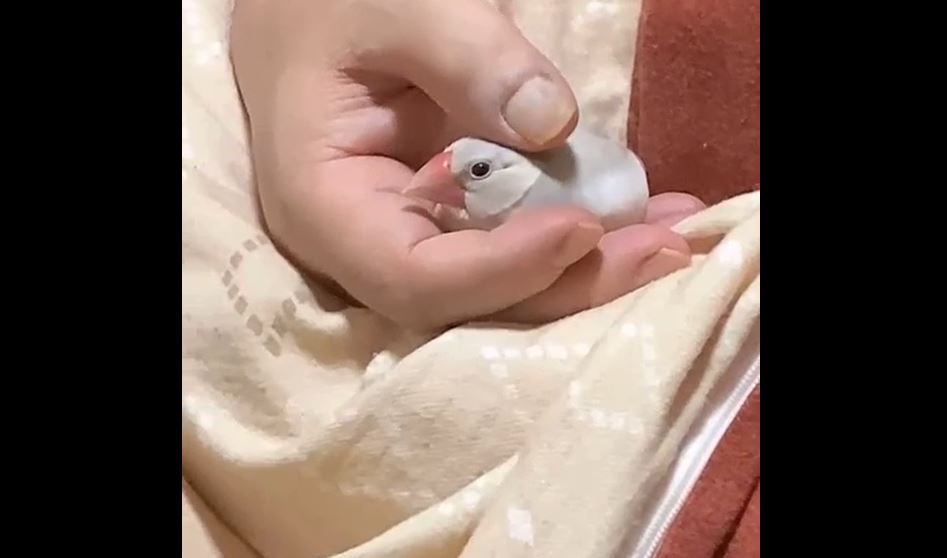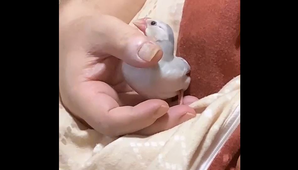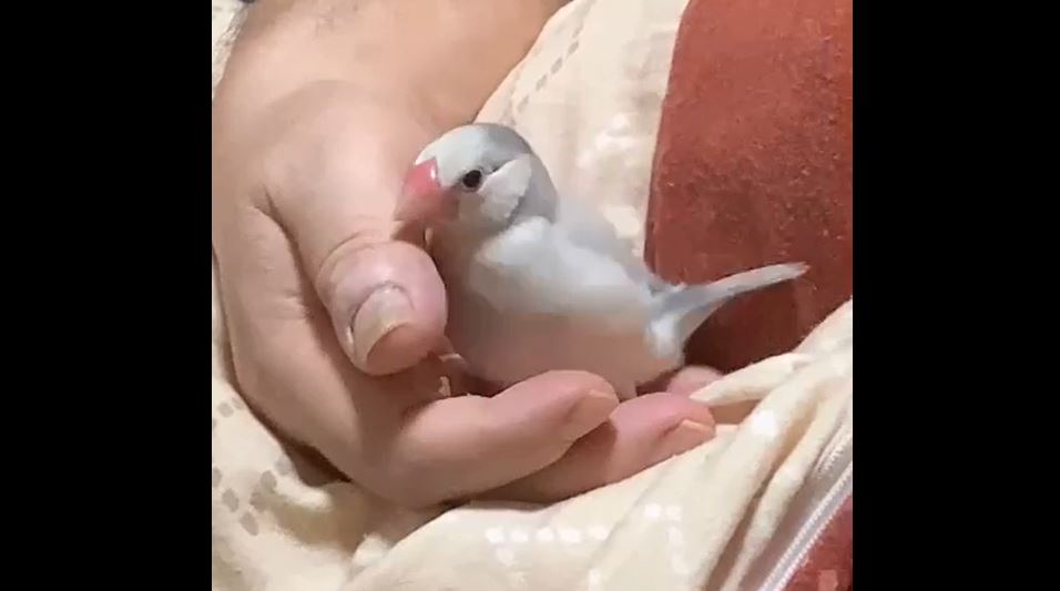 眠たくなった文鳥の寝る前の儀式? 飼い主さんの手の中でクルクルと舞を披露