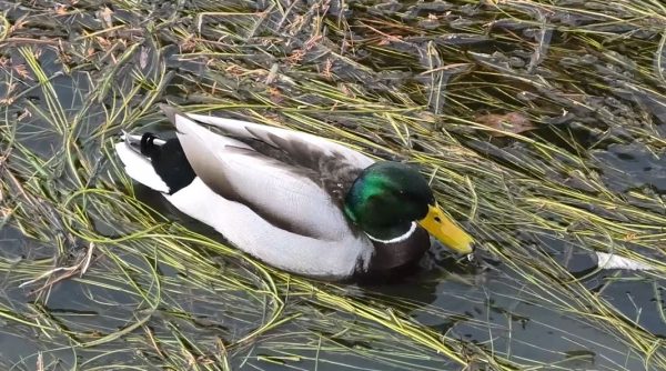 カモを見に来た投稿者のおばあちゃんさん。頭の緑が鮮やかなこちらはマガモですね。