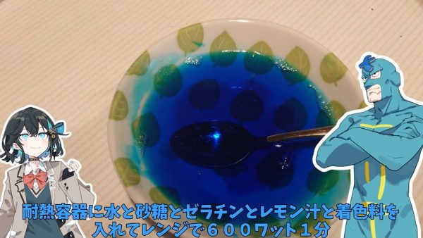 最後は水と砂糖とゼラチンとレモン汁と着色料で作ったナパージュで、青くツヤを出しました。