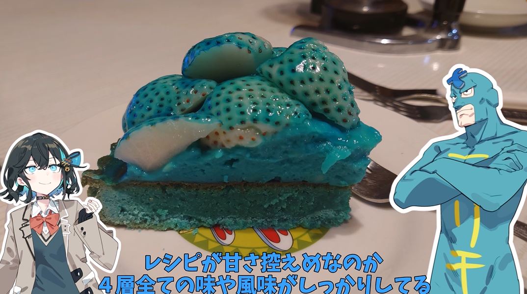 食べた感想は「うん、うまい!」。レシピが甘さ控えめなのか、4層全ての味や風味がしっかり感じられるとのこと。それぞれの層の青の違いを確認できるのもイイ感じです。