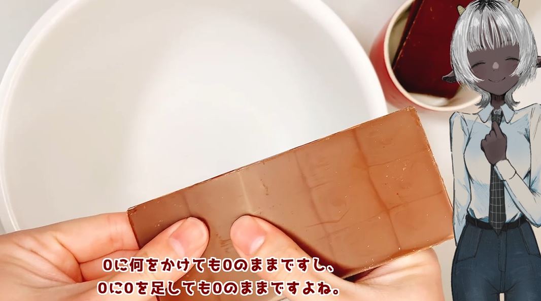0に何をかけても0であること、0に0を足しても0のままであることを根拠に、「算数的0kcalチョコレートケーキ」を作るという投稿者さん。
