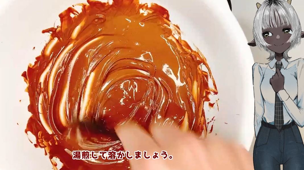 まずはチョコレートを0g量ると湯煎で溶かしました。