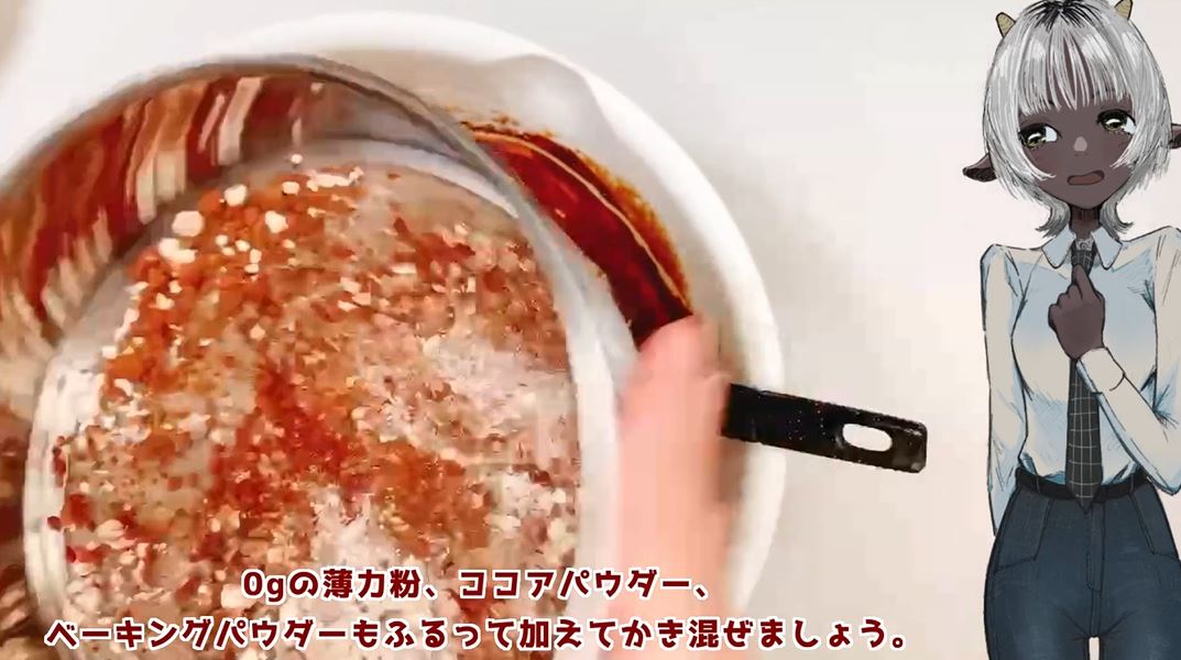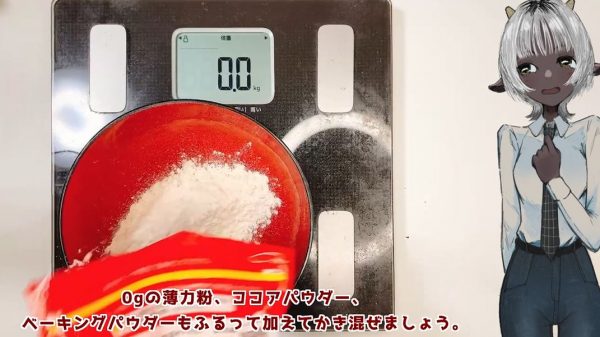 続いて0gの砂糖と、質量0の材料を順に加え混ぜていく投稿者さん。