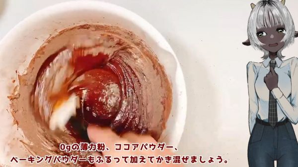 0gの薄力粉とココアパウダーとベーキングパウダーはちゃんとふるって加えます。