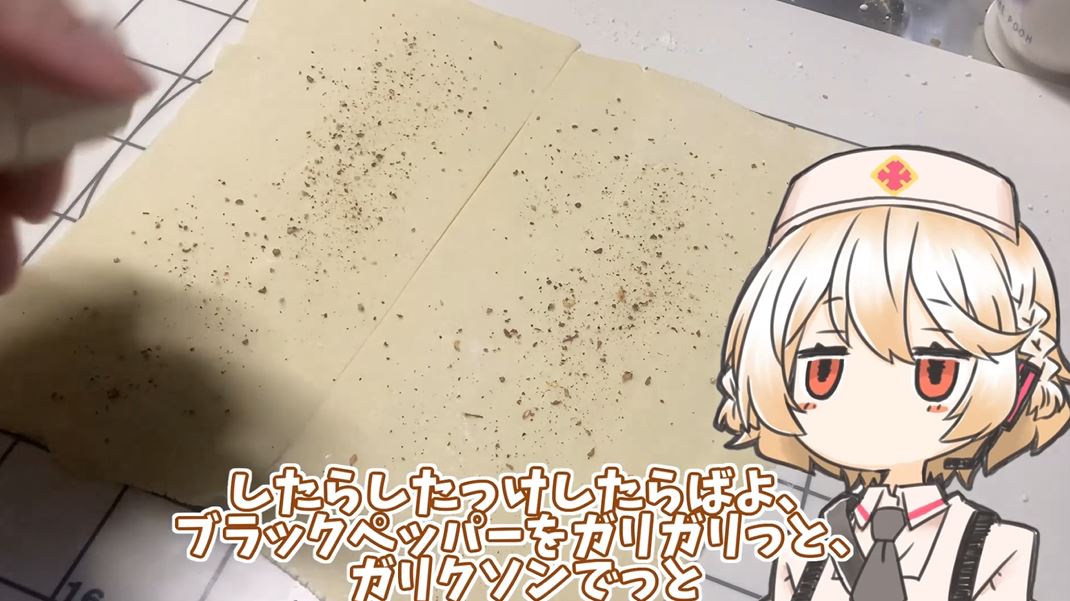 パイシートをしっかり伸ばしたらブラックペッパーを全体に。