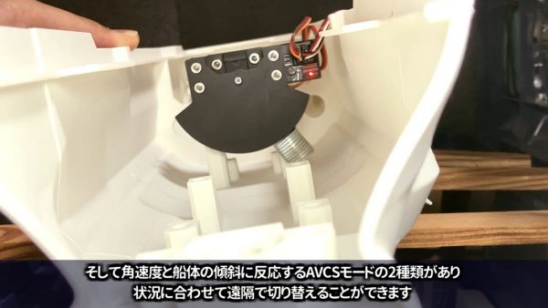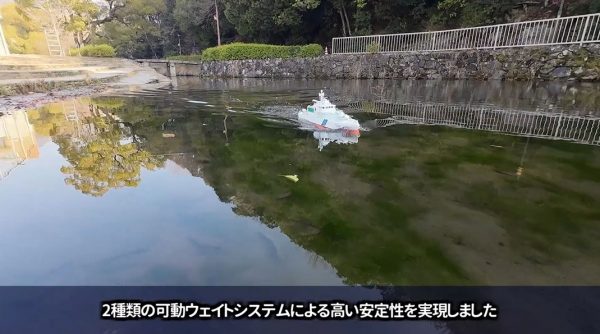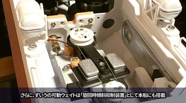 さらに元の船の可動ウェイトを「旋回時傾斜抑制装置」として搭載するという2段構え。これにより安定性は抜群に。