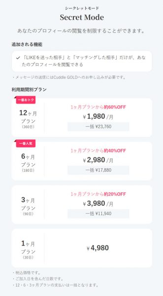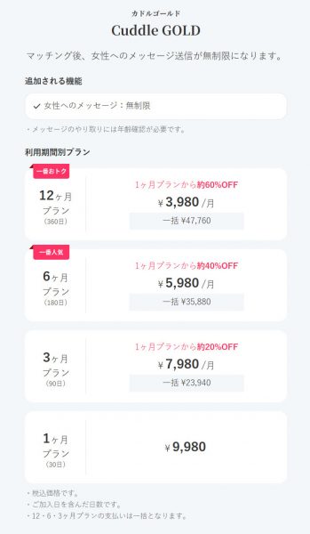 男性会員向けプランの一覧(画像をタップで拡大します)