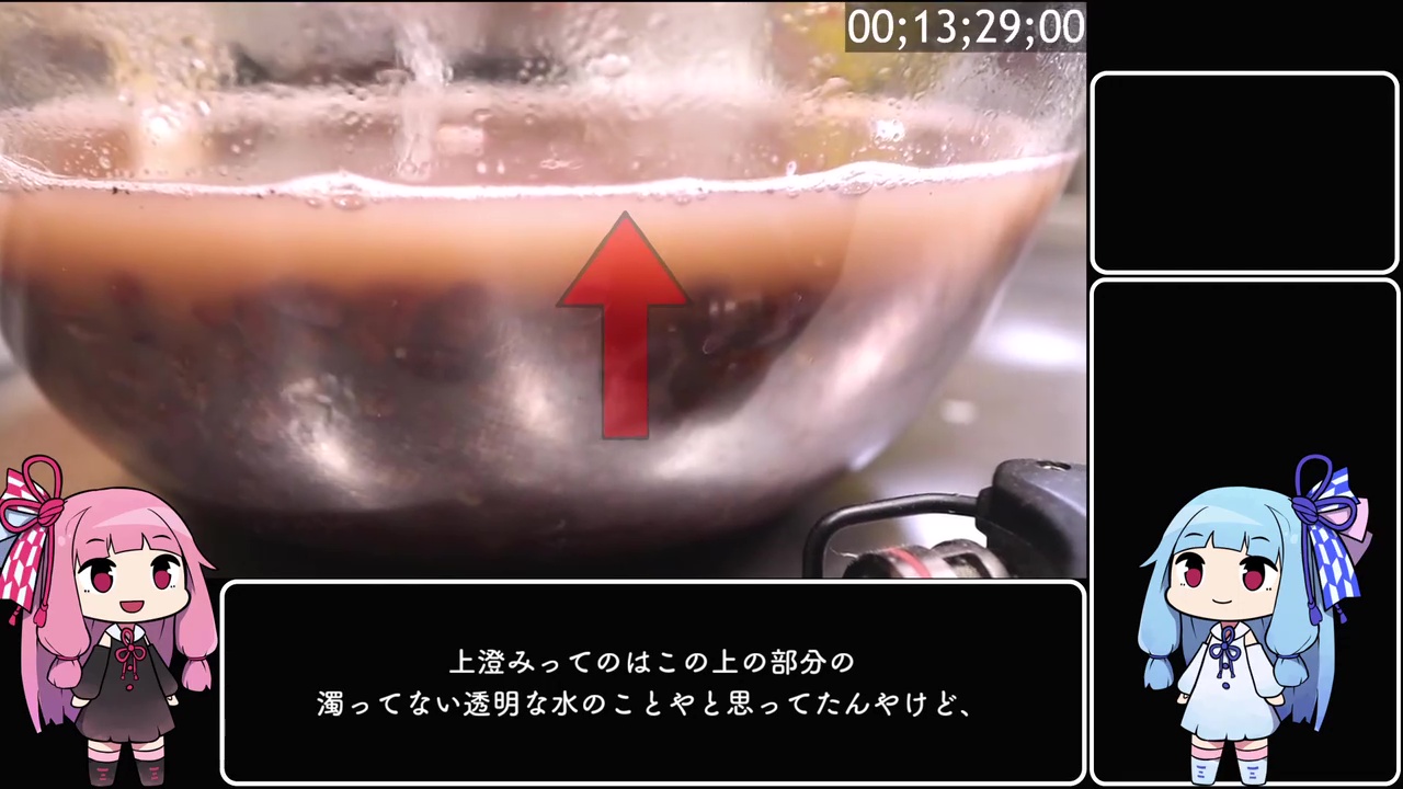 指でつぶせるまで茹であげたところで、ボウルにあけ、小豆を沈殿させます。続く工程は「沈殿したら静かに上澄みを捨てる」なのですが、投稿者は“澄んだ部分だけ捨てる”と勘違い。本来は濁った部分ごと捨てるべきだったようです。