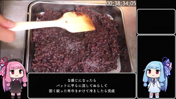 つまみ食いすると「めちゃうまい」とのことで、あんこ作りは無事成功。バットに広げ、濡らして固く絞ったふきんを掛けて冷まします。