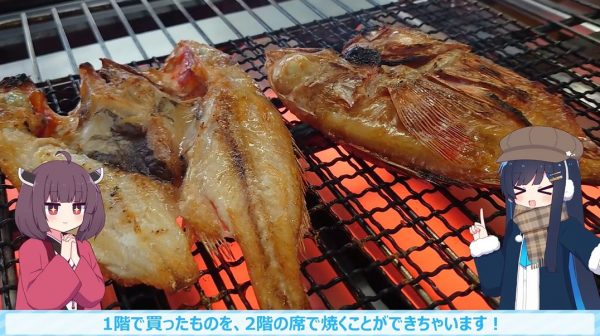 ここは1階の海産物の直売所で買ったものを、2階のレストランで焼いて食べることができます。