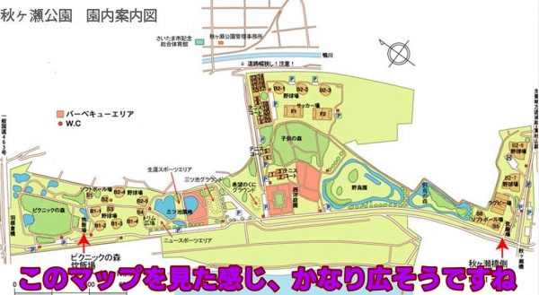 かなり広いこちらの公園。現在地はピクニックの森前の駐車場近くとのこと。