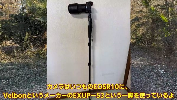 まずは装備を紹介。キヤノンのカメラEOSR10に一脚です。新米マスターさんによると、一脚は歩きながら撮りたくなったらすぐにカメラを固定できる利点があるのだとか。