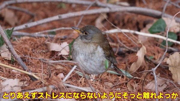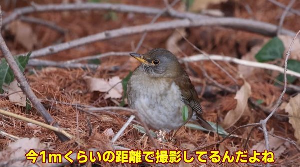 その距離なんと1m。割と警戒心が強いこの鳥としては貴重な機会とのこと。頭をチラチラ動かしているのでこちらを認識しているようですが、逃げるようすはありません。ストレスを与えないようそっと離れる新米マスターさんでした。
