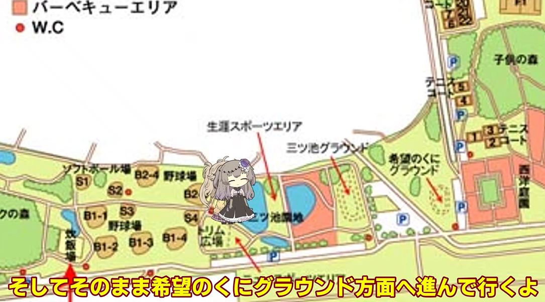 ピクニックの森を抜けソフトボール場のところまでやってきました。