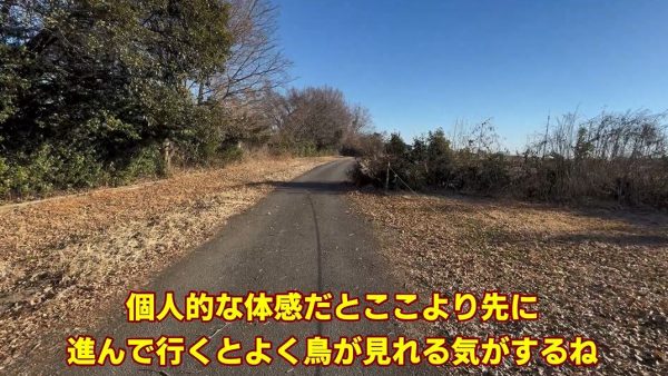 次に来たのは休耕田のエリア。ここより先に進むと鳥がよく見れる気がすると新米マスターさん。ちなみに右が休耕田で、左はレッズランドという浦和レッズが運営する会員制のサッカー場が隣接しています。