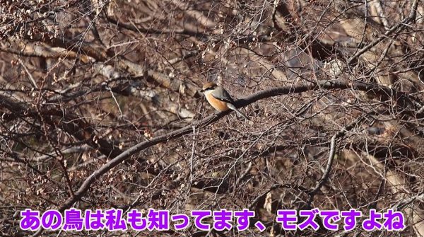 このエリアで遭遇したのはモズです。こちらはオスとのこと。