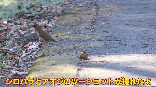 そこへシロハラも現れて、シロハラとアオジのツーショットを撮ることができました。
