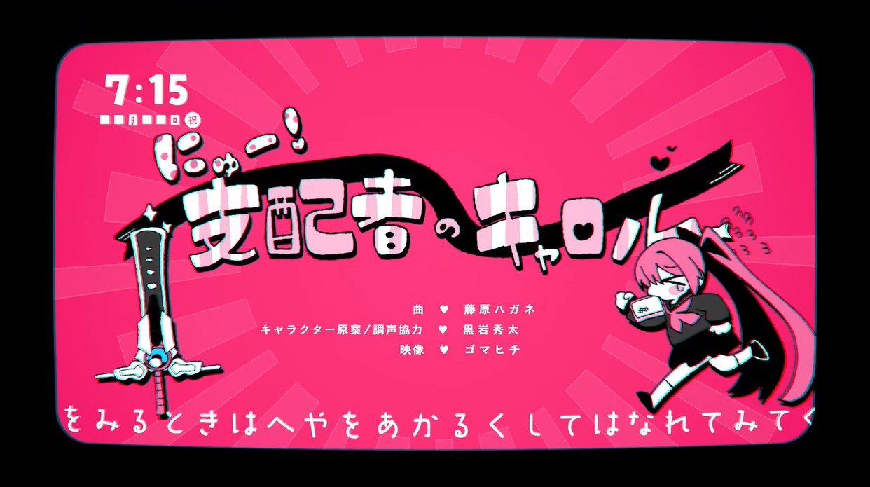 2025年12月に投稿された藤原ハガネの新曲である本曲、まず目に入るのはタイトルのバランス感だ。「にゅー!」という表現のキャッチーさと、その後に続く「支配者のキャロル」という宗教めいた単語。その言葉遣いの温度差が心をざわつかせる。